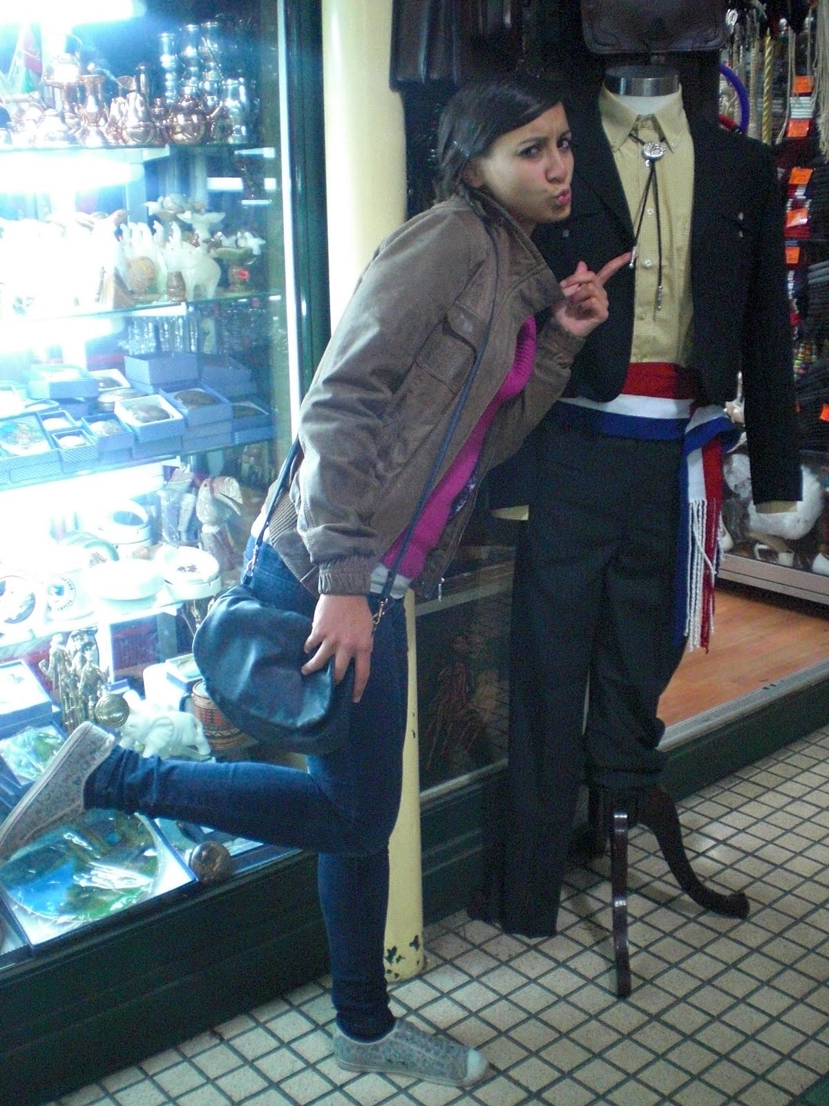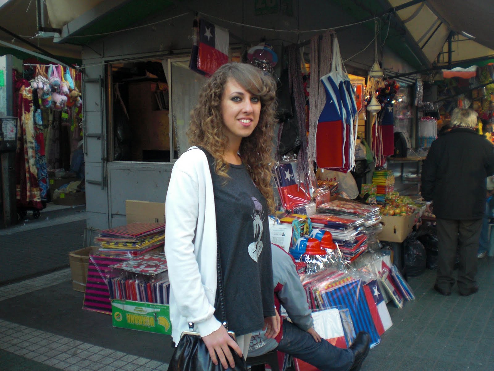 A mí me ha tocado el día relajado. El martes, después de salir de ajedrez, fuimos al cine. Vimos El Origen en versión original, porque aquí casi todas las películas son en versión original subtitulada en chileno. Algo que aprender de esta cultura lejana. El caso es que antes de entrar al cine estuvimos en la estación central de trenes de aquí de Santiago, donde hay un mercado de gran cantidad de objetos con el sello chileno. En las fotos podréis apreciar lo oportuno de las compras que realizamos... (quiero dejar claro que fue un regalo impuesto por las gallegas).